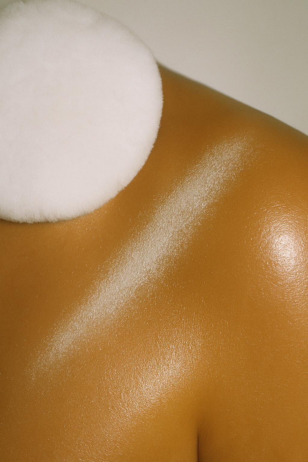 The large, plush puff turns application into a moment — floating over the body with the perfect dusting of powder. No glitter. No mess. Just clean, soft radiance and a scent that feels intimate and feminine.